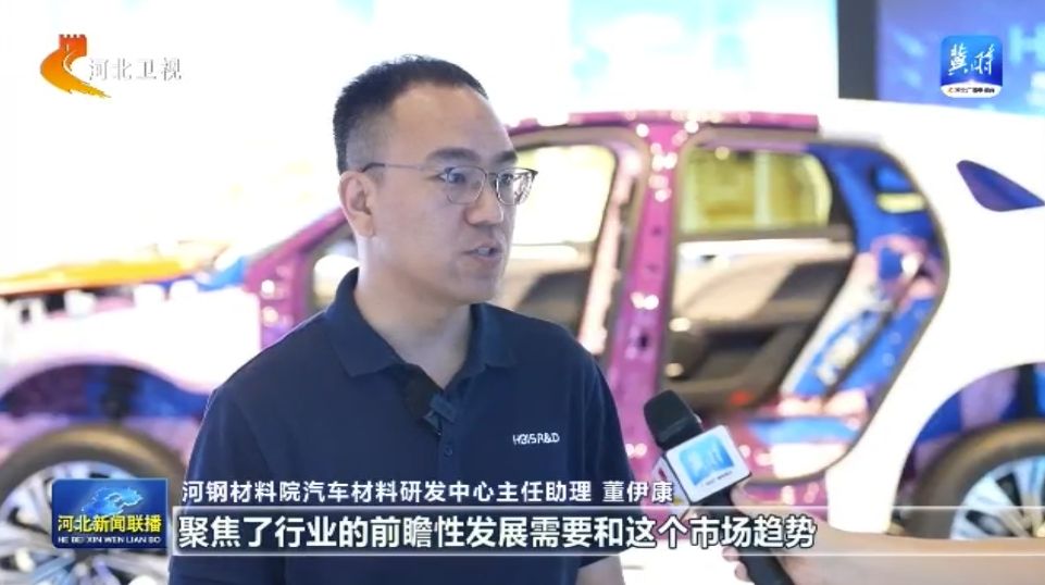 河钢材料院汽车材料研发中心主任助理 董伊康: 聚焦了行业的前瞻性发展需要和这个市场趋势,开发出一种强度更高、碳排放更低的一款新产品,降碳幅度能够达到40%以上,整个技术已经实现了产业化,并且未来的增长的空间是极为广阔的。