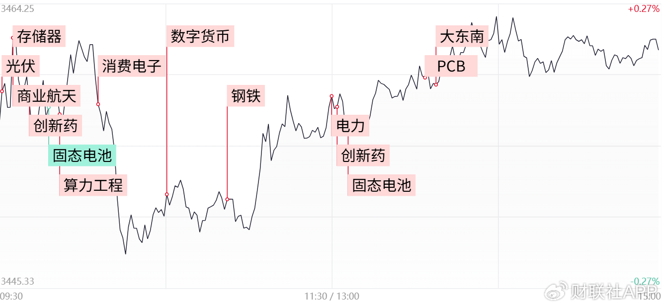 个股来看,今日除了创新药与算力硬件方向走强以外,固态电池概念股同样于午后探底回升,大东南上演“地天板”录8天6板,中一科技、华盛锂电、铜冠铜箔等个股同样完成向上反包。另外龙头股宁德时代今日同样放量涨近5%。作为前期调整的热点中,率先迎来资金明确回流的题材,固态电池的短线地位进一步得以巩固,在后市盘面的持续轮动下,固态电池仍存在进一步冲高之动能。