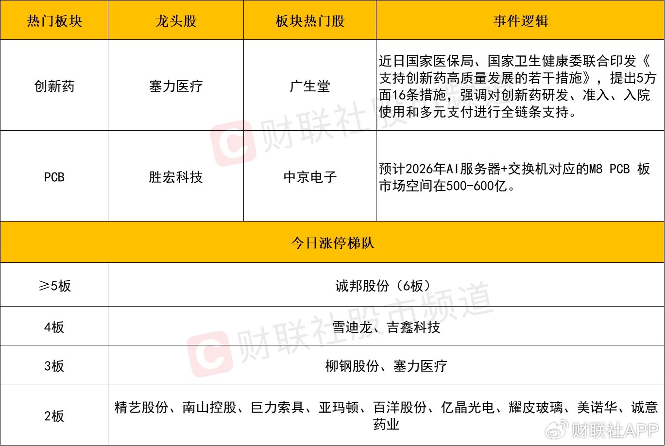 板块上,PCB板块全线走强,逸豪新材、方正科技、中一科技、博敏电子、中京电子、鹏鼎控股等个股涨停,胜宏科技涨超6%再创历史新高,深南电路、满坤科技、则成电子等个股涨幅居前。