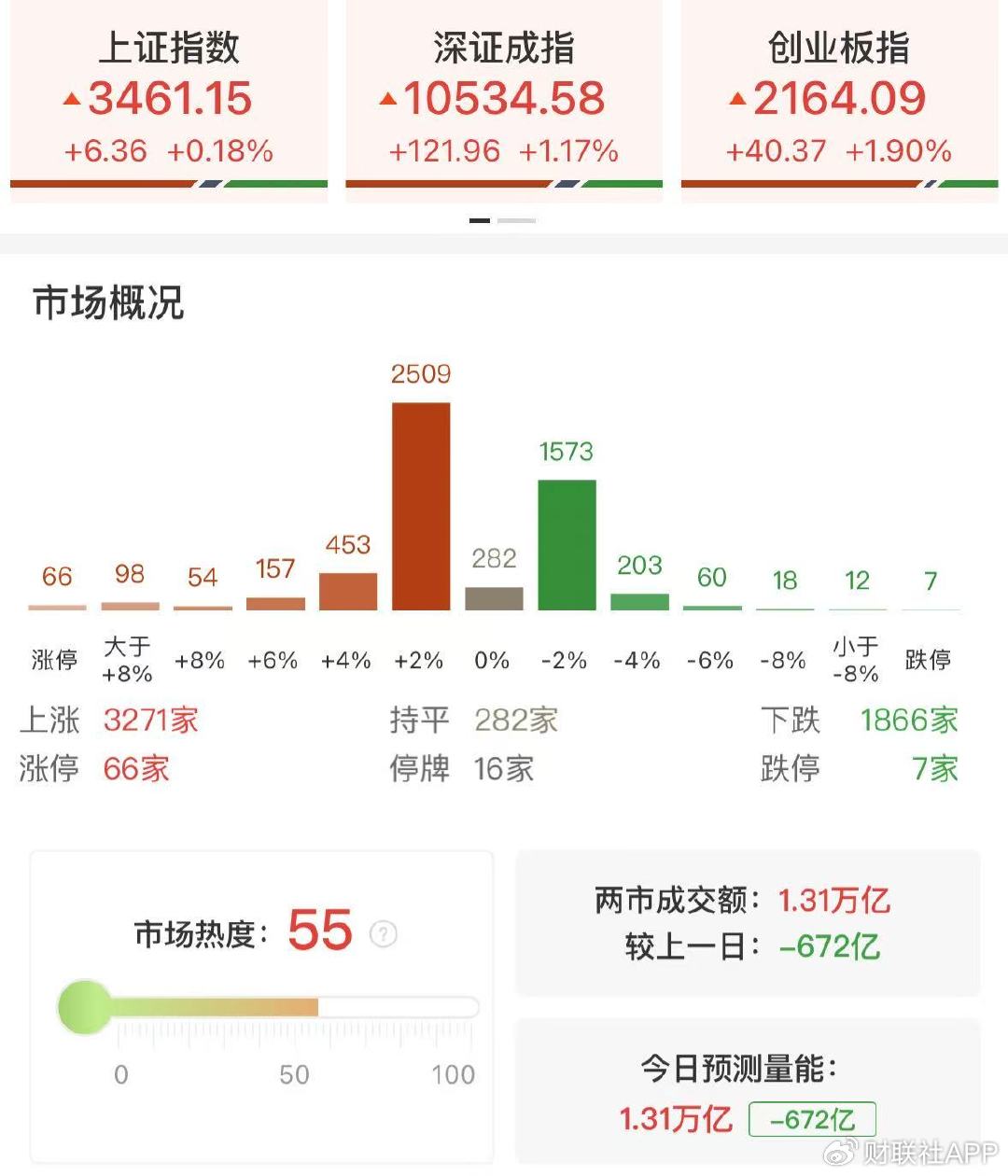 财联社7月3日讯,市场全天震荡反弹,创业板指领涨,宁德时代涨近5%。沪深两市全天成交额1.31万亿,较上个交易日缩量672亿。盘面上,市场热点较为杂乱,个股涨多跌少,全市场超3200只个股上涨。从板块来看,算力硬件股再度大涨,PCB等方向领涨,中京电子等多股涨停。创新药概念股震荡走强,神州细胞等涨停。固态电池概念股展开反弹,大东南上演“地天板”。下跌方面,海洋经济概念股展开调整,克莱特跌超10%。截至收盘,沪指涨0.18%,深成指涨1.17%,创业板指涨1.9%。